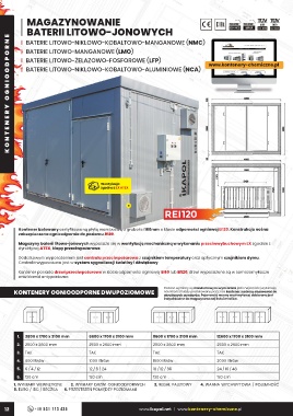 Kontener posiada drzwi przeciwpożarowe w klasie odporności ogniowej EI60 lub EI120, drzwi wyposażone są w samozamykacze